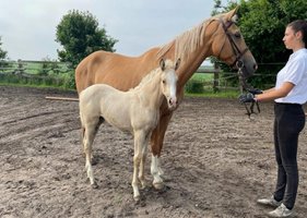 Seit 2016 ist mit der Palominozucht eine neue Farbe auf das Gestüt gekommen. Mit Fuchsstuten - Töchter von unserem Camaro - und verschiedenen Cremello-/ Palominohengsten züchten wir seitdem erfolgreich Palominos.